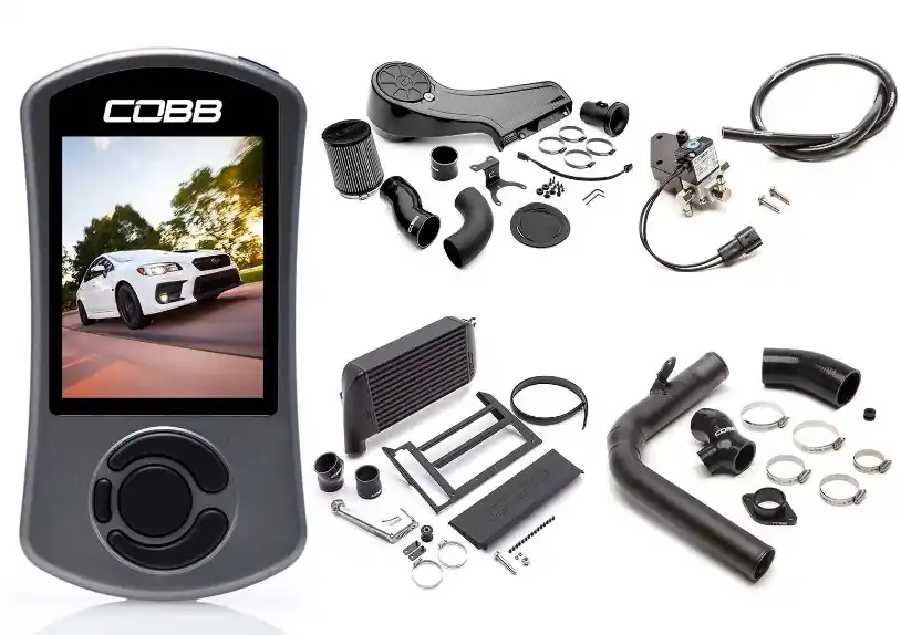 The Subaru NexGen Stage 2 Redline Carbon Fiber Power Package WRX 2015-2021 includes an Accessport V3, Redline Carbon Fiber Intake, Charge Pipe Kit, Top Mount Intercooler, 3-Port Boost Control Solenoid (BCS) & COBB Vehicle Badge!
