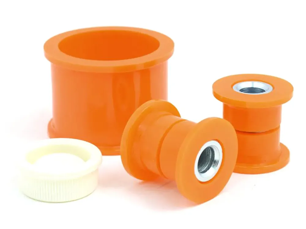 Polyurethane Steering shaft mount bushing with steel inserts.Reduces play in the steering shaft, firming up feel and improving feedback from your steering.