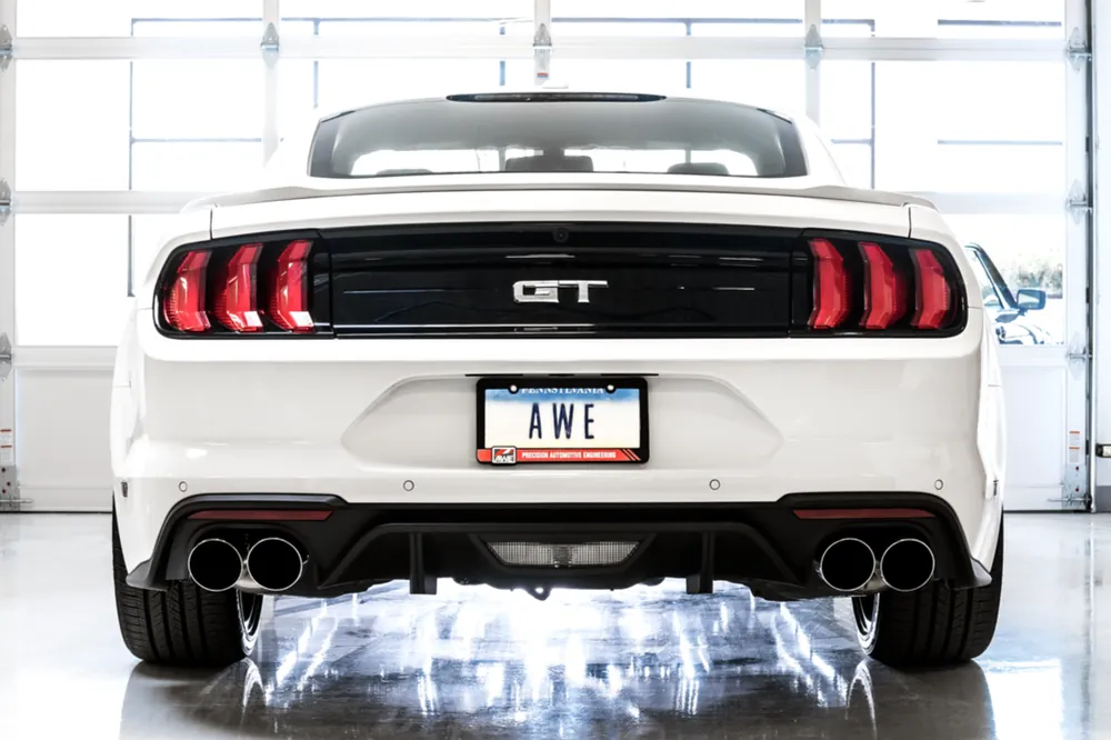 - AWE Track Edition Cat-back Exhaust for the 2018+ Mustang GT – Quad Chrome Silver Tips
