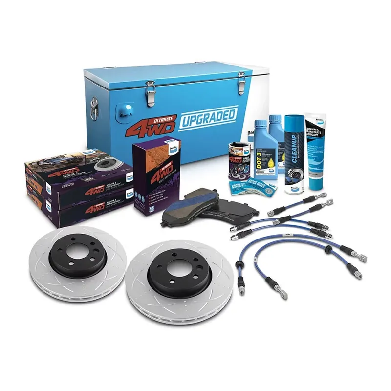 The Bendix Ultimate 4WD Brake Upgrade Kit with advanced brake pads and rotors, braided lines and a host of ancillary items is the ultimate brake upgrade for the latest 4WD vehicles such as Ranger and Hilux.