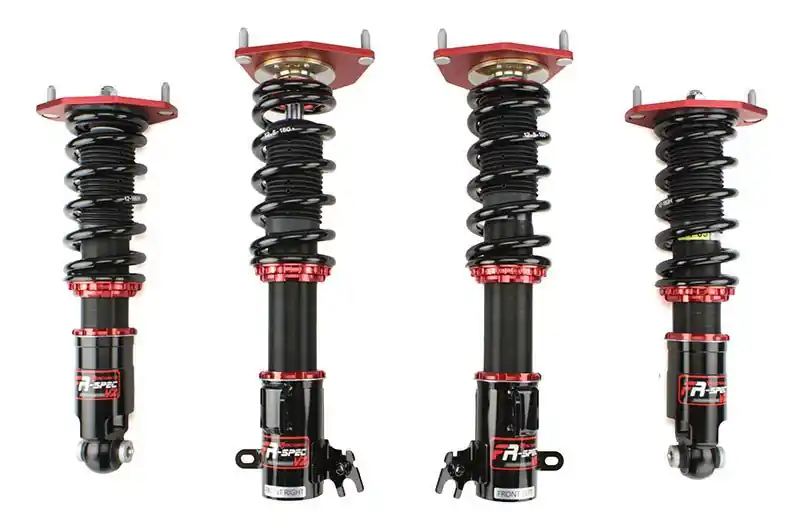 These V2 FR-Specs are designed from the ground up for racing. They have higher spring rates and valving to suit performance track driving at no cost. The FR-Spec line features a solid aluminum, pillow-ball camber plate that significantly reduces suspension deflection while giving full alignment control. They have a mild drop range designed to maximize shock travel and fluid capacity for consistent, long lasting performance.