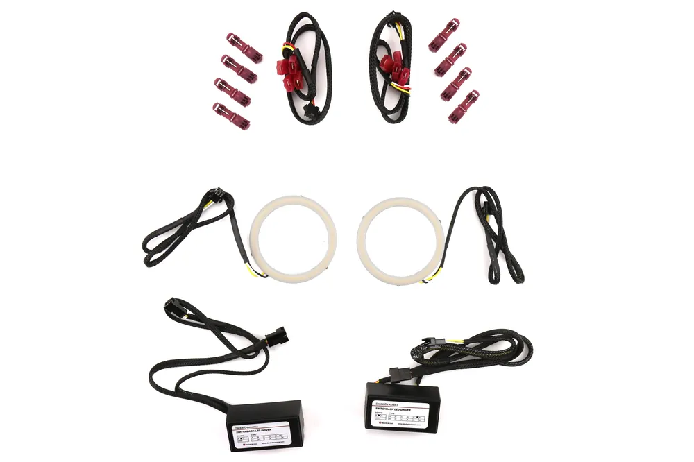 Your order includes two halo rings, two drivers, two pigtails for easy wiring, and eight T-tap connectors.
