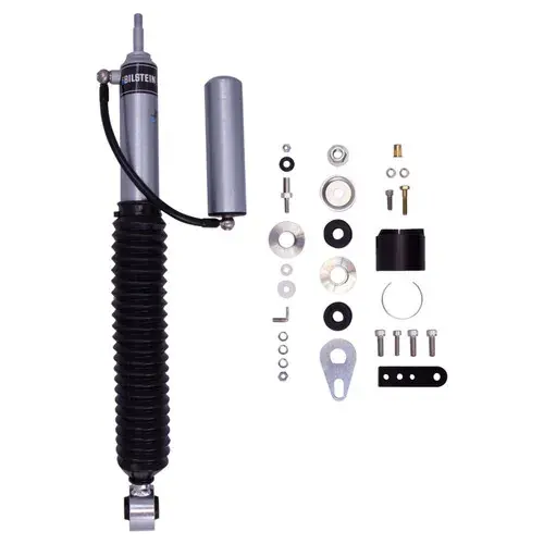 Bilstein B8 5160 remote reservoir shock absorbers are designed as a direct fit solution for lifted trucks and SUVs. The remote reservoir will offer increased cooling capacity and wheel travel to optimize overall performance compared to a traditional shock absorber. These shock absorbers feature a monotube design for consistent fade free performance and utilize velocity sensitive digressive valve settings which are tuned for each specific application. Each shock absorber is fitted with a unique 360 degree swivel banjo hose fitting and an attractive billet reservoir mount where applicable providing a clean, low profile installation. B8 5160 remote reservoir shock absorbers will increase overall durability of your vehicle allowing you to conquer the harshest of off-road environments.