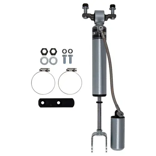 Bilstein B8 5160 remote reservoir shock absorbers are designed as a direct fit solution for lifted trucks and SUVs. The remote reservoir will offer increased cooling capacity and wheel travel to optimize overall performance compared to a traditional shock absorber. These shock absorbers feature a monotube design for consistent fade free performance and utilize velocity sensitive digressive valve settings which are tuned for each specific application. Each shock absorber is fitted with a unique 360 degree swivel banjo hose fitting, providing a clean, low profile installation. B8 5160 remote reservoir shock absorbers will increase overall durability of your vehicle allowing you to conquer the harshest of off-road environments.