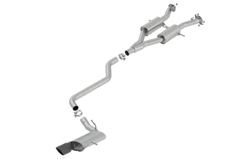 This system features a 4″ black chrome on T-304 stainless steel tip. Using BORLA Stainless Steel Polish p# 21461 is NOT recommended with these black chrome tips. We suggest cleaning the tips with hot water and a microfiber cloth. BORLA Cat-Back and Axle-Back exhaust systems feature patented straight-through and multi-core technology designed to unleash hidden horsepower. Increased exhaust velocity adds power, driving excitement, fuel economy, and the distinctive BORLA Sound of Power respected by motoring enthusiasts everywhere.