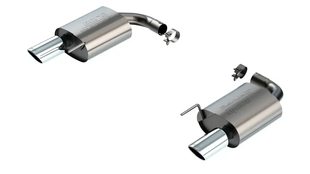 Borla Axle-Back exhaust system 11983 is designed to fit the 5.0L Mustang GT that is NOT equipped with Active Exhaust. It features 4″ bright chrome on T-304 stainless steel tips and the classic S-Type sound level. Systems with black chrome on T-304 stainless steel tips, and carbon fiber tips are also available. It fits both the coupe and convertible models. The straight-through and patented multi-core technology is designed to unleash hidden horsepower. Increased exhaust velocity adds power, driving excitement, fuel economy, and the distinctive Borla Sound of Power respected by motoring enthusiasts everywhere.