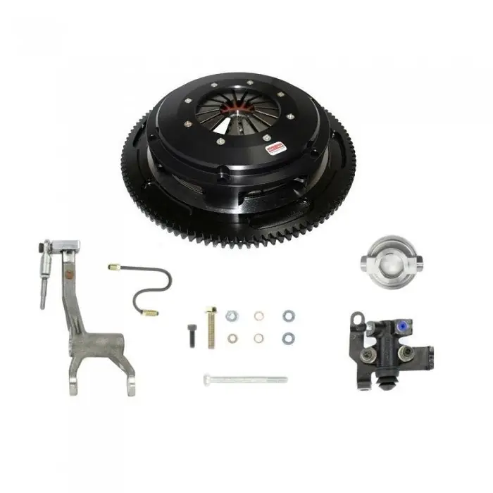 This kit includes ceramic clutch disks, a 4140 forged steel flywheel, and a 6061 T6 aluminum cover with a 6150 steel diaphragm spring for superior strength and heat resistance. Also included are the pilot bearing and throw-out bearing, making installation straightforward with no transmission modifications required. The hydraulic release bearing ensures smooth clutch operation and improved pedal feel.