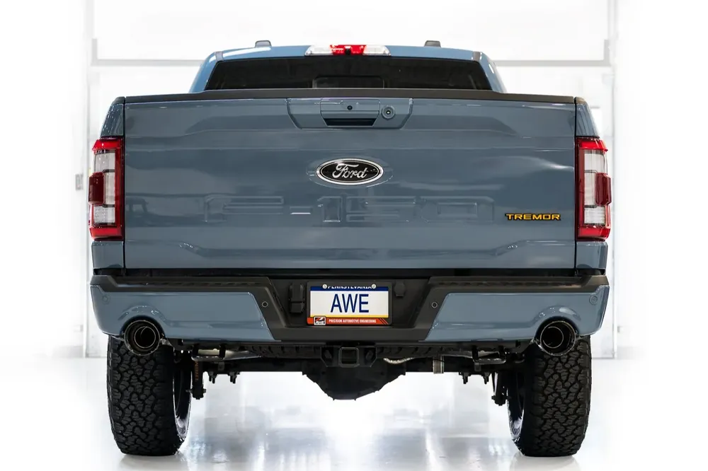 AWE 0FG Non-Resonated Catback for ’21+ Ford F-150 Tremor (With Bumper Cutouts) – Diamond Black Tips