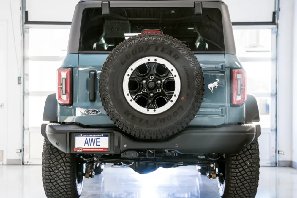 AWE 0FG Catback Exhaust for Ford Bronco with BashGuard™ – Dual 4.5″ Diamond Black Tips