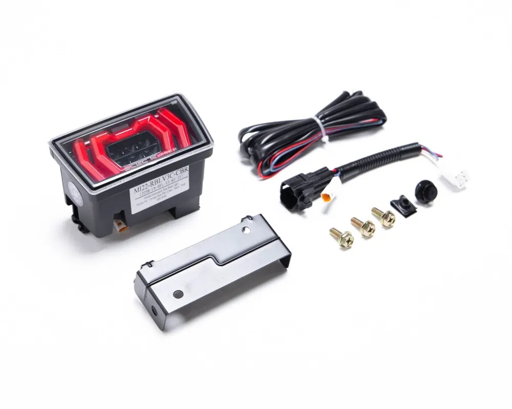 This newest version three brings some updated quality along with a unique eye catching style. With 6 high-intensity LEDs surrounded by an unique circular pattern LED bar that acts as your DRL, this is a stand out product for sure! This unit also features a first of its kind “dual-mode” with a simple flick of your wrist from the cockpit you can switch between a solid brake or a hyper blink (flash then solid.) This will give each user the ability to configure the lights function to exactly how they want from the driver’s seat!