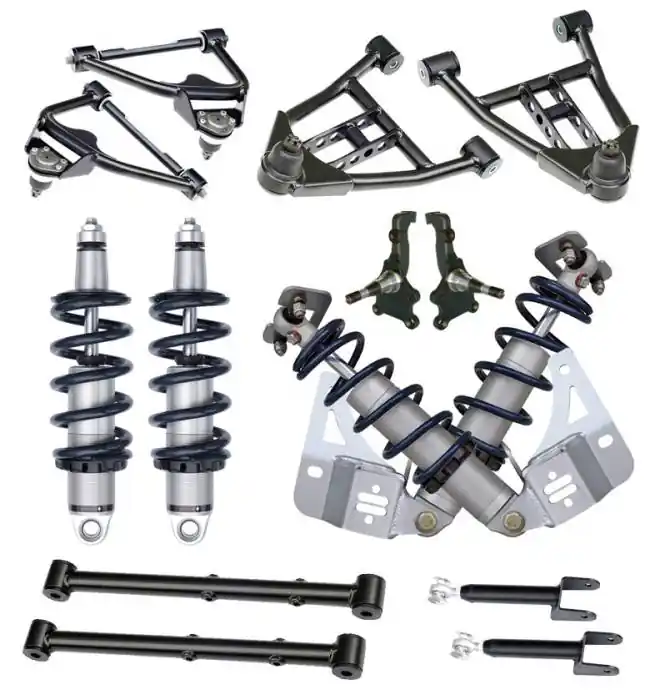 - Complete Level 1 NA CoilOver System for 64-67 GM “A” Body. Includes Non Adj. front & rear CoilOvers, front upper & lower StrongArms, rear upper & lower StrongArms and Tall Spindles.