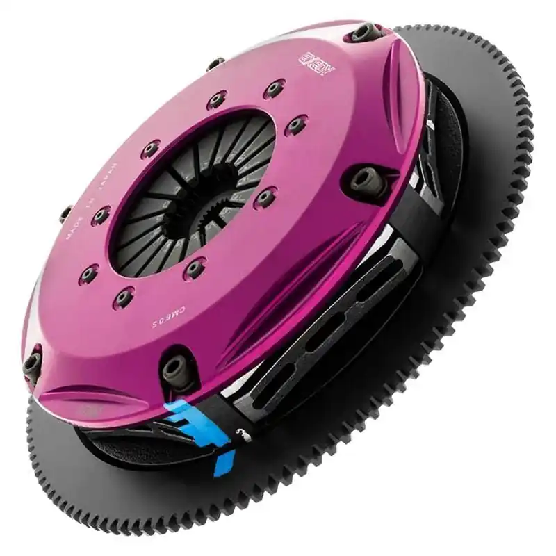 Featuring a lightweight chromoly steel flywheel and EXEDY’s signature purple anodized forged aluminum clutch cover, this kit uses T5001 cerametallic friction materials to withstand extreme heat and torque up to 500 ft/lbs. Its patented clutch “cushion” technology reduces pedal effort for better control and modulation. Available in strap or lug drive configurations, it suits drag, road, and rally racing applications.