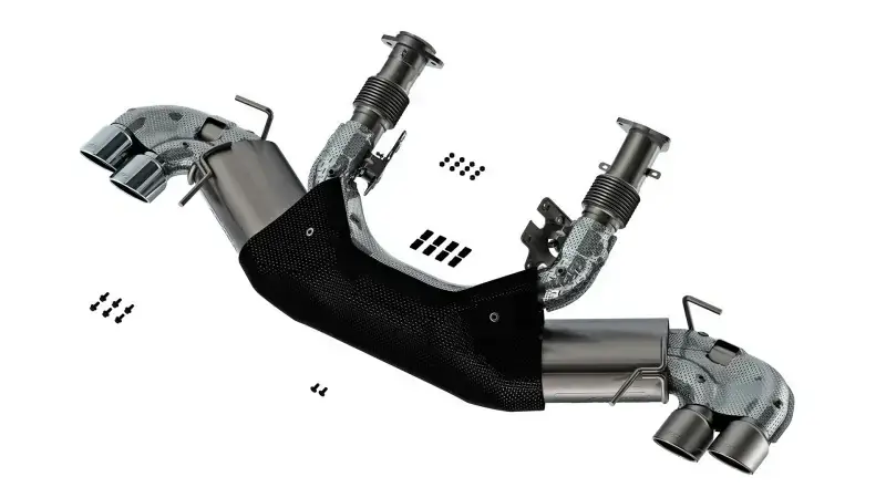 Developing systems for the C8 Corvette presented BORLA engineers with unique challenges, but our team was up to the challenge. Great care was taken to ensure the integrity and function of the system as well as the vehicle itself. This Cat-Back system includes AFM (’20-’21)/ DFM (’22-’24) valves but does NOT include NPP dual mode exhaust valves. It features the ATAK sound level, our most aggressive sound. It provides a more exciting driving experience without any drone. It features our Polyphonic Harmonizer and SwitchFire technology. BORLA’S Polyphonic Harmonizer Technology utilizes patented units that contain pipes of different diameters and lengths to create multiple exhaust notes that harmonize to deliver a clean, rich, full-bodied sound. Completely eliminating the turbulent center intersection of a standard X-Pipe, BORLA’S patented SwitchFire design truly blends the combustion pulses from both sides of the engine for improved performance and a custom sound.