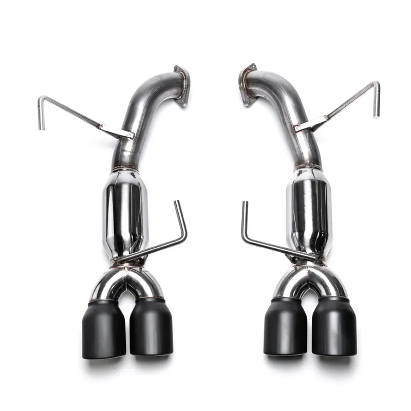 The ETS Muffled Axle back is the quieter of the offerings from ETS. This product is designed for customers who are looking for a mild upgrade in sound, if your stock system is a 1 in terms of scale this system will fall somewhere between the 4-5 position on the sound scale! The sound of an axle back is greatly affected by the components that come before it as well, any adjustments to the downpipe and or mid pipe will increase the overall exhaust note as well so be sure to keep that in mind when making your selection!