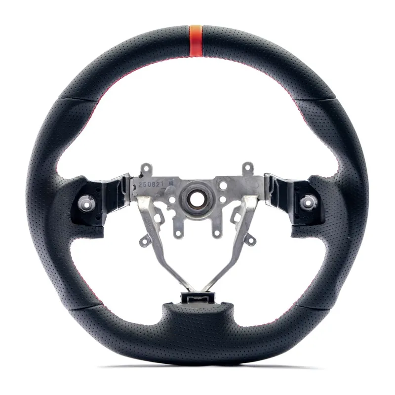 Exclusive Molded Innovations OEM Plus Style Perforated Leather Steering Wheel w/ Red Stitching and Red Stripe 2008-2014 WRX / 2008-2014 STI / 2009-2013 Forester / 2008-2011 Impreza / 2008-2009 Legacy / 2008-2009 Outback