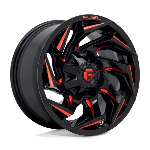Fuel 1PC D755 REACTION 5X139.7 15X8 -18 GLOSS BLACK MILLED WITH RED TINT Modern