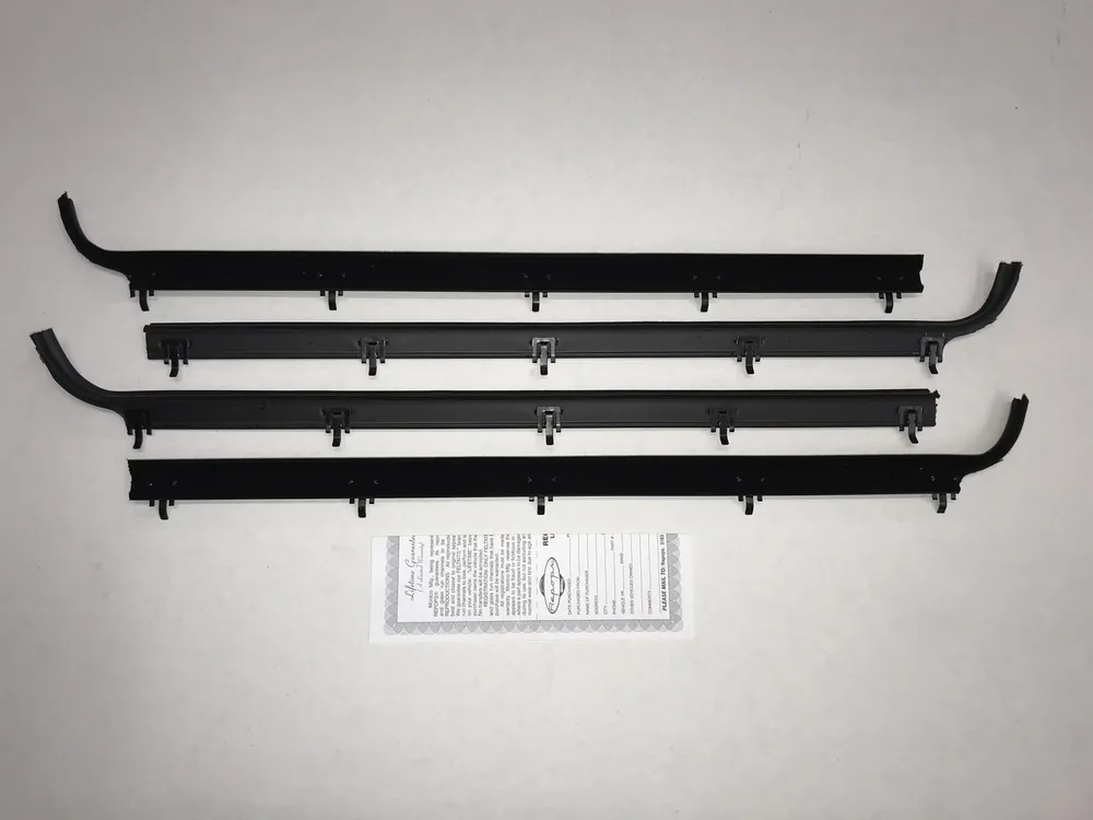 A window sweep kit is a set of replacement seals for classic car doors and windows. These sweeps help keep out water, dust, and wind while allowing the window glass to move smoothly. Replacing worn sweeps restores proper sealing, reduces interior noise, and protects door panels from moisture damage.