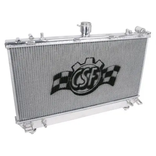 CSF manufactures the most advanced and efficient radiator cores in the industry by using innovative tube and fin technologies with industry leading testing methods to maximize airflow and heat dissipation. These techniques allow CSF to stay ahead of the pack when it comes to radiator technology! “B-Tube” technology – Unlike a regular oval shape “O” type radiator tube, CSF uses a specially engineered tube in a shape of a “B”. These “B-tubes” are carefully formed and then brazed over the seam to seal. CSF is able to use thinner and lighter aluminum material (better cooling efficiency) because this design is actually stronger than normal “O” shape tubes that are welded. The design (inlet in the middle of tube that is seam brazed) increases the heat transfer surface area of the tubes by approximately 15% over regular tubes. You get the efficiency of 2 smaller tubes vs. 1 large tube within the same space criteria. With “B-tubes” you are able to get “dual liquid laminar flow.” High Efficiency Multi Louvered Fin – CSF uses ultra efficient multi louvered fins that are carefully and precisely aligned to maximize airflow through each radiator core. Fin specifications are carefully measured and calculated for each application, and tested for maximum heat rejection efficiency in our wind-tunnel lab.