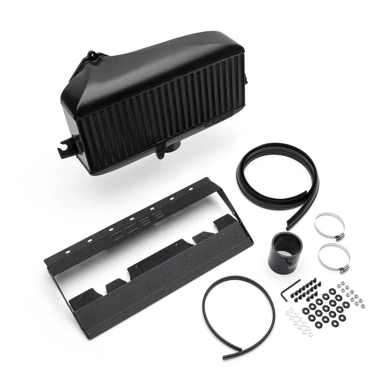 This intercooler features bespoke cast aluminum end tanks and a high-quality Garrett core, delivering superior airflow and efficient cooling compared to other top-mount options on the market.