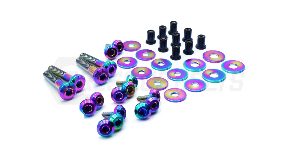Specifically engineered for the VB WRX, the kit includes hardware for trunk hinges, tail lights, and trunk lining, ensuring a perfect fit and reliable performance. Each bolt is available in seven vibrant colors—Red, True Burned, Blue, Purple, Polished, Gold, and Black—using advanced coloring processes that resist environmental wear better than traditional anodizing. Clear instructions make installation quick and straightforward, allowing you to upgrade your vehicle with confidence.