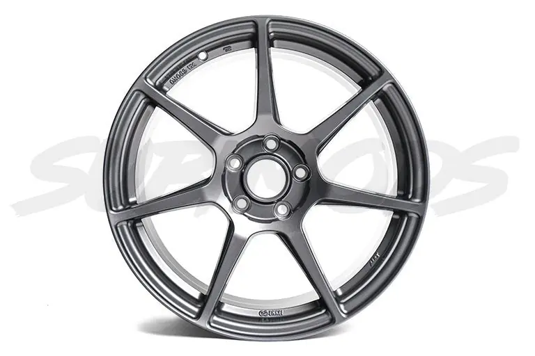 The Enkei TFR wheel showcases seven contoured spokes with precision cuts at the center, reducing weight while maintaining rigidity. The matte gunmetal finish adds a sleek, aggressive look that complements any Subaru build, while the signature flat center cap completes the clean, refined aesthetic. Engineered for versatility and durability, this wheel performs well in both daily driving and weekend autocross events.