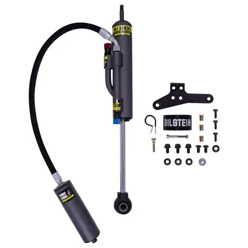 Bilstein B8 8100 (Bypass) is a direct fit, position sensitive, damper for light trucks and SUVs.These motorsports inspired shock absorbers utilize a dual tube externally adjustable bypass design.B8 8100 (Bypass) feature Incremental Flow bypass adjusters, allowing for finite and incremental changes for rebound and compression.The shocks utilize a bottom hose, remote reservoir exit port, delivering increased compression control during the full cycle.The remote reservoir is supplied with a bolt-on aluminum anodized chassis mount for an easy fitment.BILSTEIN B8 8100 (Bypass) will maximize the driver experience, offering unparalleled ride comfort and incredible bottom out control.