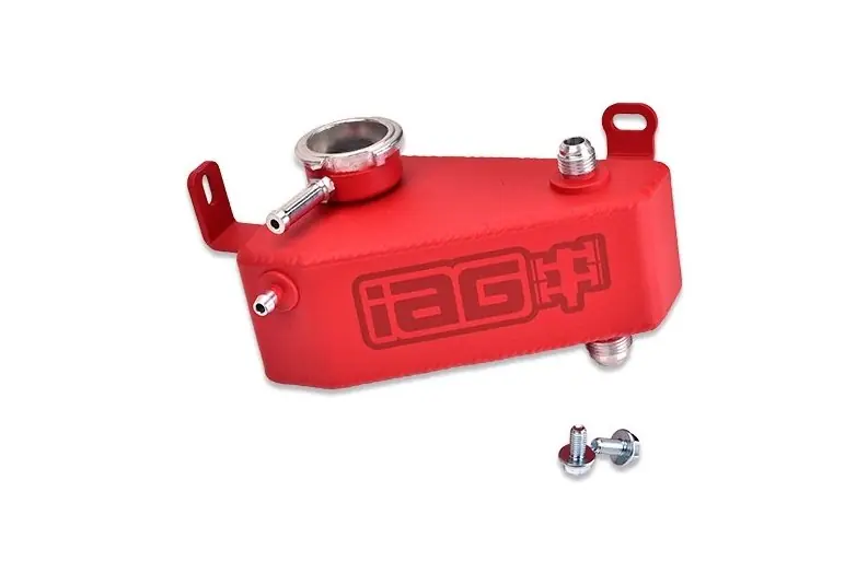 For straightforward installation, the expansion tank features two integrated mounting brackets and includes all necessary hardware. Each unit is powder-coated in either red or black for long-lasting protection and visual appeal, and finished with a laser-engraved IAG logo on the side for a premium touch.