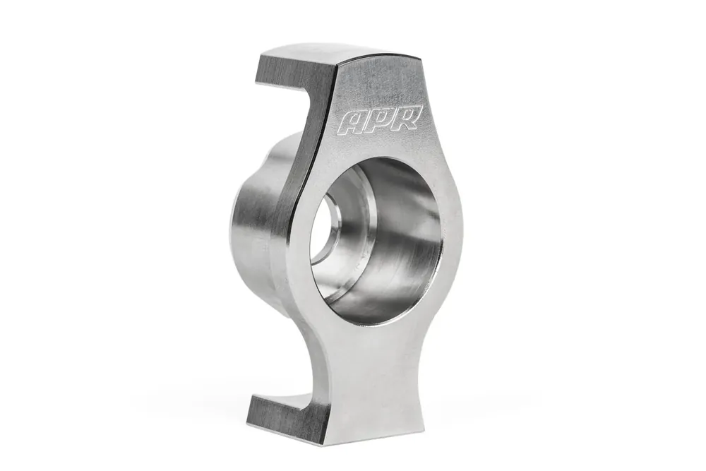 The APR Billet Stainless-Steel Dogbone / Subframe Mount Insert limits driveline movement, which helps to minimize wheel-hop and torque steer. This provides a more direct driving experience by eliminating slop in the driveline and does so without introducing excessive or uncomfortable driveline vibration and noise.