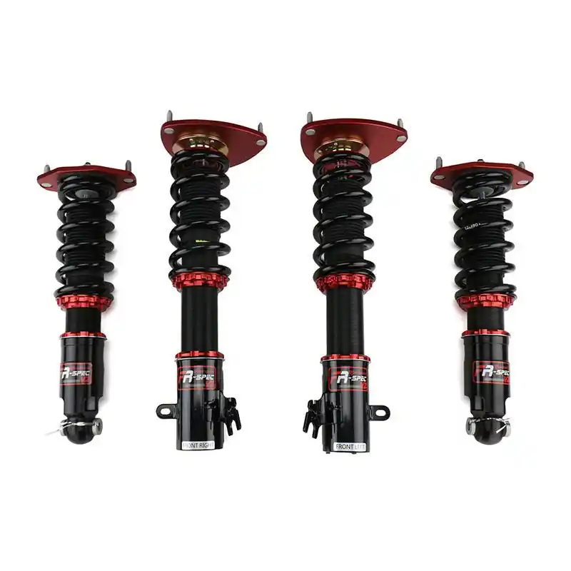 These V2 FR-Specs are designed from the ground up for racing. They have higher spring rates and valving to suit performance track driving at no cost. The FR-Spec line features a solid aluminum, pillow-ball camber plate that significantly reduces suspension deflection while giving full alignment control. They have a mild drop range designed to maximize shock travel and fluid capacity for consistent, long lasting performance.