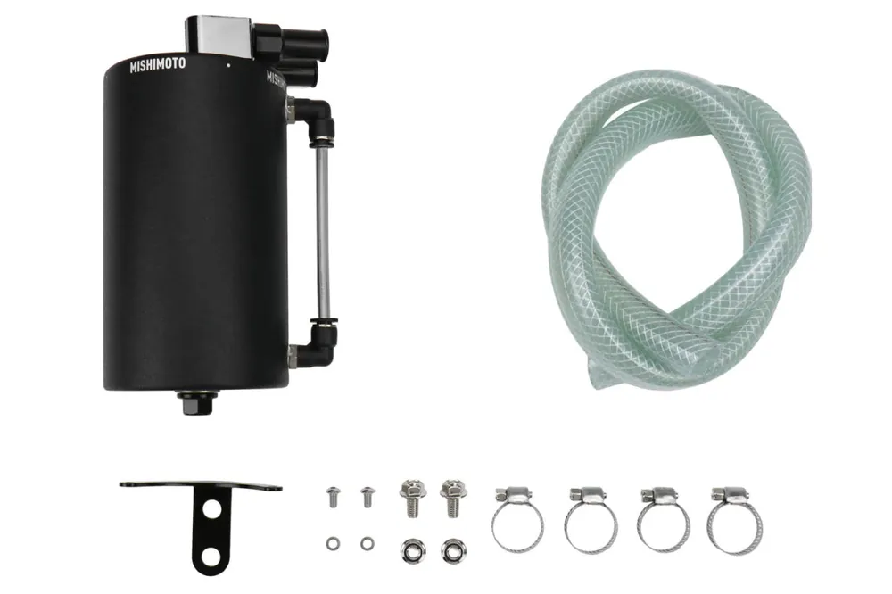 The Mishimoto Aluminum Oil Catch Can is designed to prevent harmful oil buildup throughout your turbo system—including the turbocharger, intercooler, intake manifold, and piping. By capturing oil and fuel vapors before they enter the intake tract, this catch can helps maintain consistent combustion temperatures, protects engine components, and preserves overall efficiency.