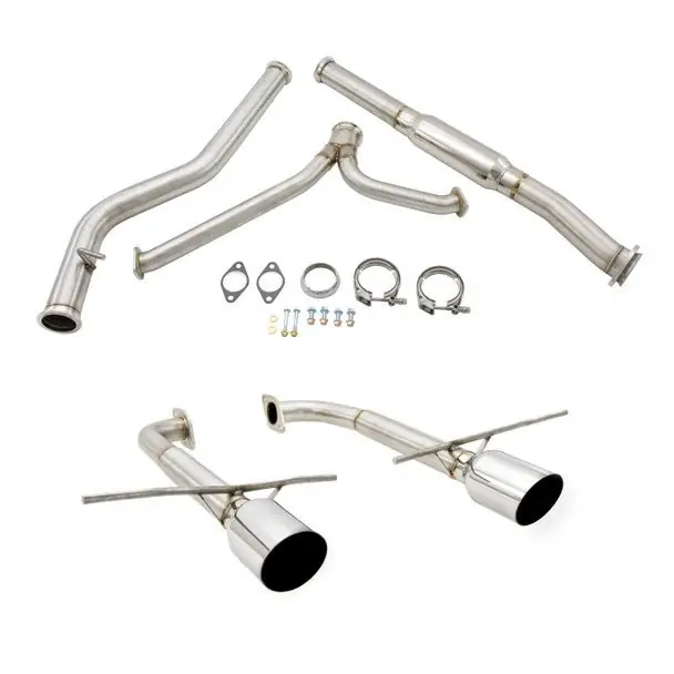 The catback system includes a midpipe and an axleback exhaust for a complete package ready for bolt-up installation to your vehicle with no cutting or welding required, a definite perk!