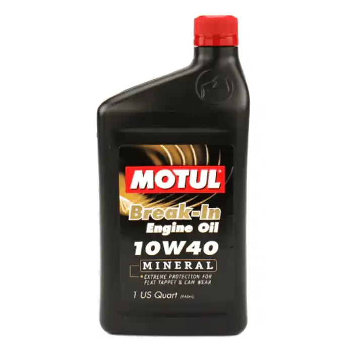 Motul Mineral based 10W40 Break-In Engine Oil utilizes high-heat and shear-stable polymers to maintain the optimum lubricating film and ring seal in hot-running engines. This oil is compatible with catalytic converters so it is legal for street use. Its mineral base formula with high zinc content makes it an excellent oil choice for break-in procedures.