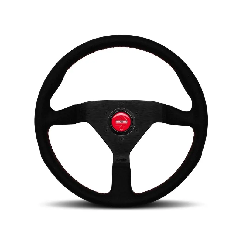 New Arrival Momo Montecarlo Alcantara Steering Wheel 350mm – Black/Red Stitch/Black Spokes
