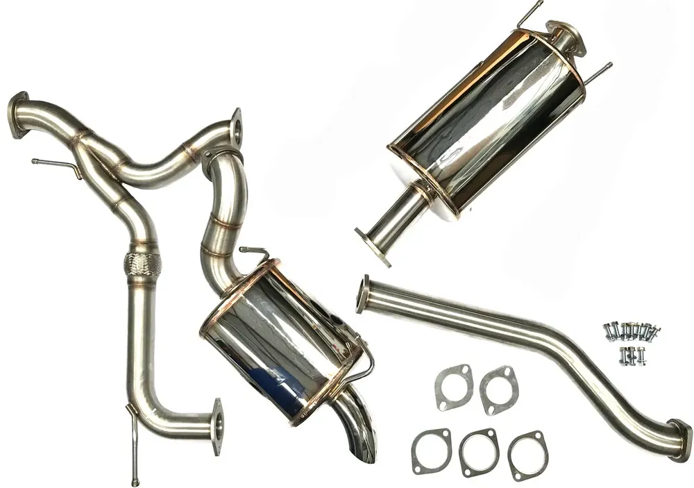 The front section bolts directly to the second factory OEM cat pipes.The AVO exhaust has a 2.5″ OE style flex at the front which will ensure all components forward of the cat back will be free of cracking.