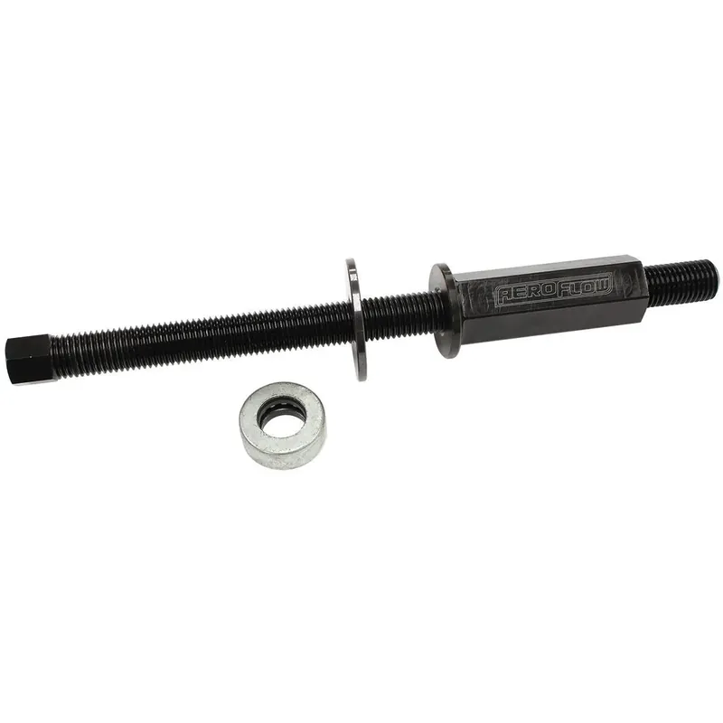 This Aeroflow Performance harmonic balancer installation tool is designed for use with GM LS crankshafts. Made from high quality steel material. This tool makes installing the harmonic balancer simple and easy on your LS series engines. Just thread the correct end into the crankshaft and rotate the nut pressing the bearing against the harmonic balancer.