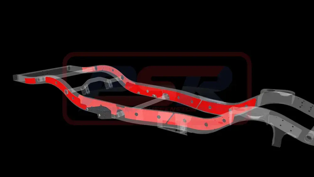 PSR’s Nissan Patrol GQ-GU Chassis Bracing Wagon Long Arm Internal-External is a total chassis brace package to suit a wagon chassis. Designed to brace internally from behind our Nissan Patrol GQ-GU chassis side weld on HD engine mounts PSRPAT-086, back to the common fatigue point at the joint on the inside of the chassis just in front of the rear upper control arm mount. This is not only a weak area but a common collection point for contaminants which accelerates corrosion of the chassis from the inside out, another need to strengthen the area. Externally it overlaps this fatigue point and braces back to the rear most part of the chassis and is designed exclusively to work around our own rear long arm system. The kit consists of 10 pieces precision cut from 4mm 350MPA plate.