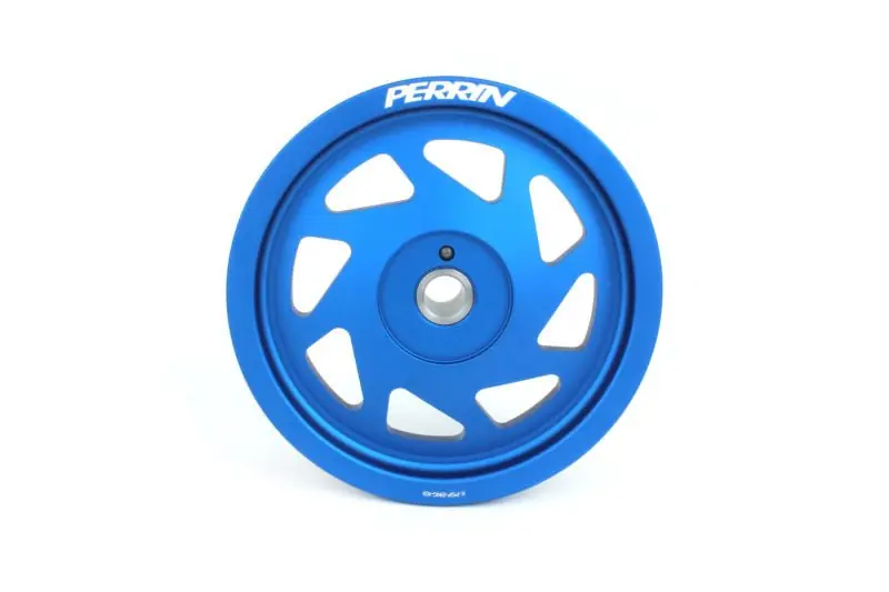The PERRIN Performance Crank Pulley weighs just 2 lbs, which is 1 pounds lighter than the stock OEM crank pulley. This reduction in weight from the crank shaft is equal to removing more than 100 lbs of vehicle weight! Throttle response, horsepower and torque are all increased with this easy to install part. Precision machined mounting hub included. Designed to look mean and fast, the PERRIN Performance crank pulley has precision machined grooves which tightly sync with all OEM and aftermarket belts.