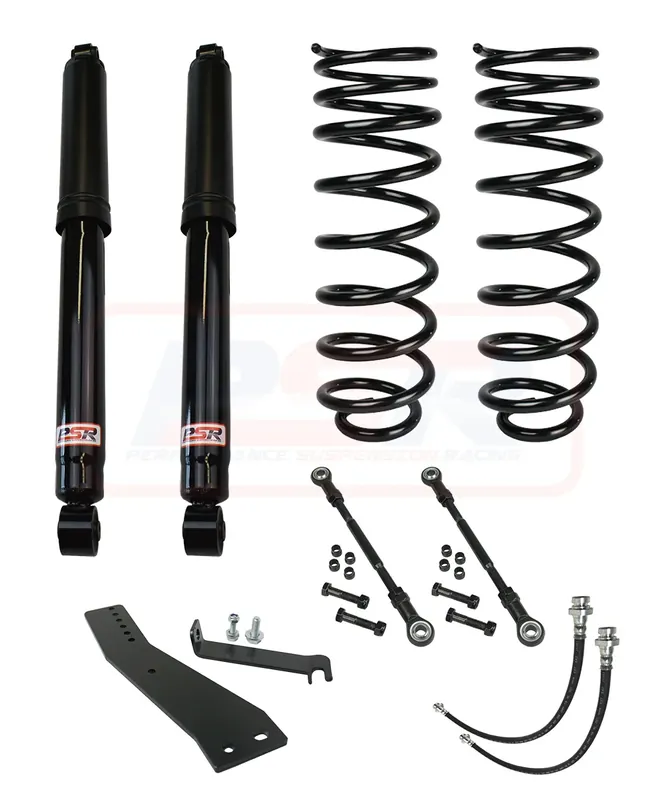 This rear only system sits at 2″ and contains PSR TTG rear shocks, flex coil, rear extended link pins, rear headlight aim extension bracket and extended brake hoses.