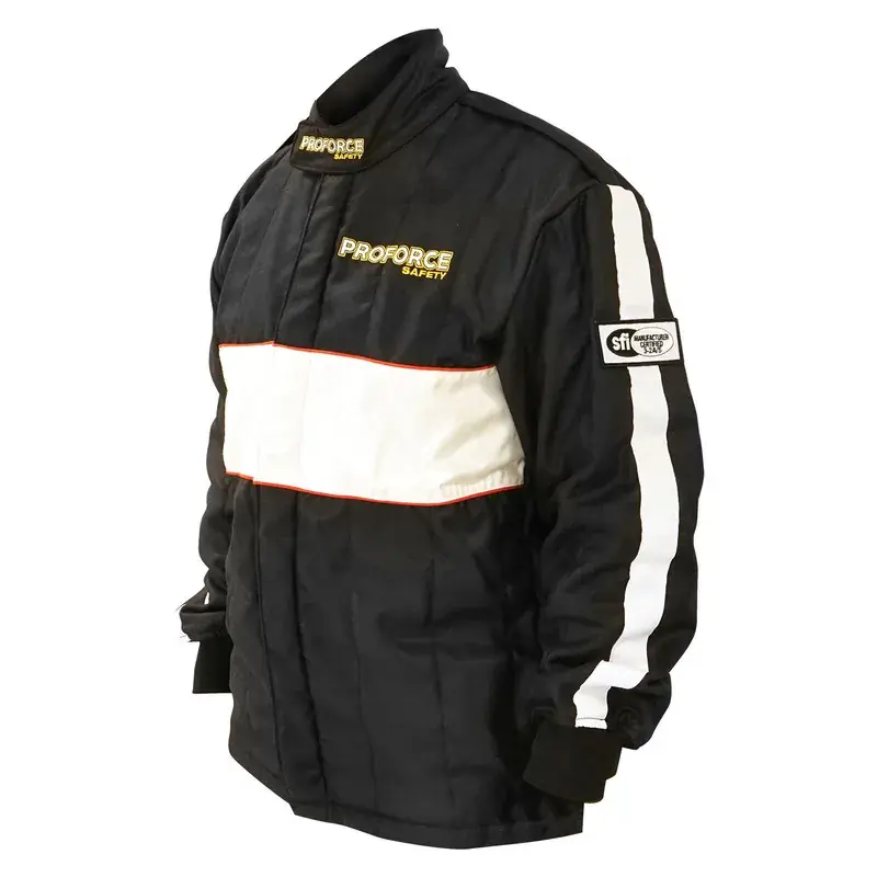 Home / Accessories / Proflow Proforce Pro 2 Driving Suit SFI 3.2A/5 Fire Retardant Racing Suit Top Jacket Two-Piece Multiple Layer Pyrovatex Small Black/White Strip Genuine