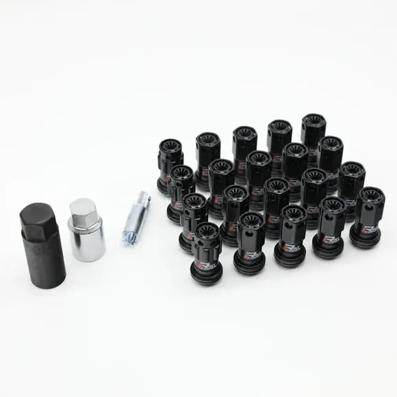 Crafted from lightweight yet strong SCM435 alloy, these lug nuts feature a two-piece construction with a floating seat design to protect your wheels’ finish. The unique black coating and plastic inserts hide unsightly wheel studs for a clean look, while the removable inserts accommodate extended studs. Designed specifically for Subaru models with a 12×1.25 thread pitch, this set includes 16 hex-style lug nuts, 4 spline drive locking nuts, and installation tools for easy fitting.