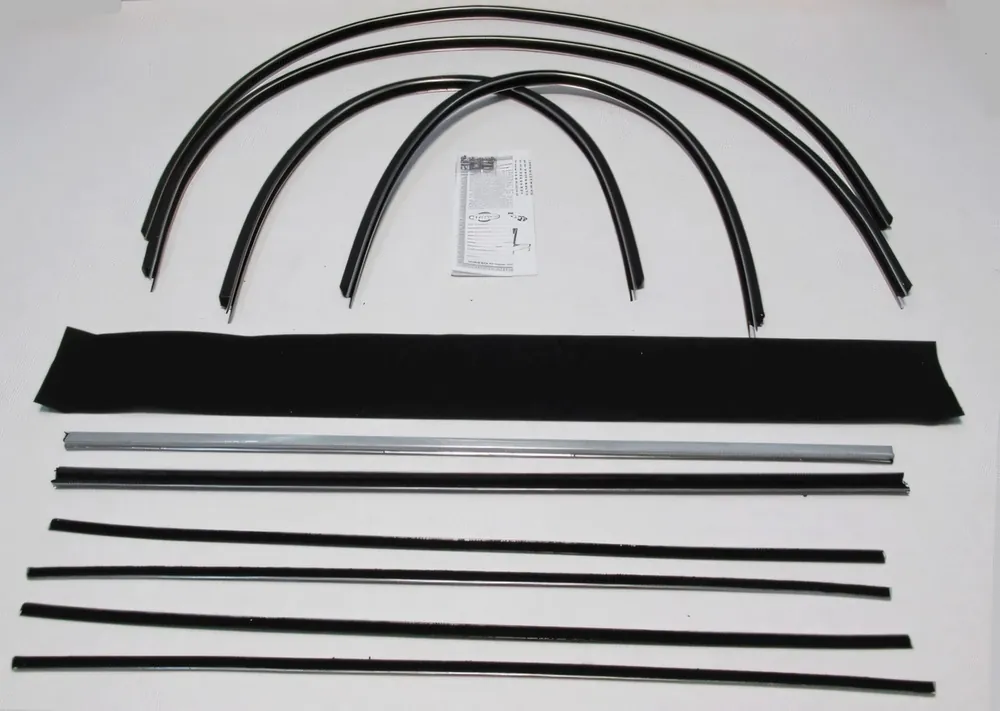 A window sweep kit is a set of replacement seals for classic car doors and windows. These sweeps help keep out water, dust, and wind while allowing the window glass to move smoothly. Replacing worn sweeps restores proper sealing, reduces interior noise, and protects door panels from moisture damage.