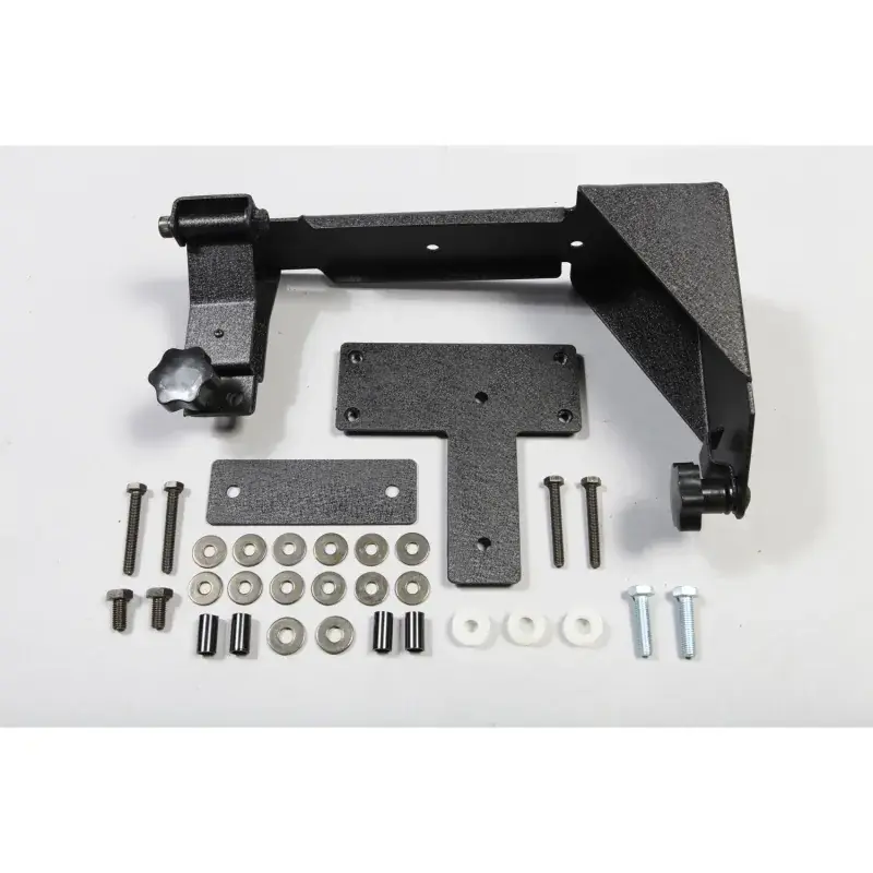 JK Off-Road Jack Mount allows you to carry your Off-Road jack on the outside of your vehicle saving precious cargo space. Fast and easy bolt on installation. Compatible with stock and most aftermarket rear bumpers without integrated tire carriers. When combined with a Rugged Ridge HD Spartacus tire carrier, the Jack Mount Spacer Kit (11586.03) is required. Bracket is sturdy and secures the jack in two locations to eliminate any vibration noise during vehicle operation. Durable textured finish looks great. Fits most off-road style jacks including Hi-Lift.
