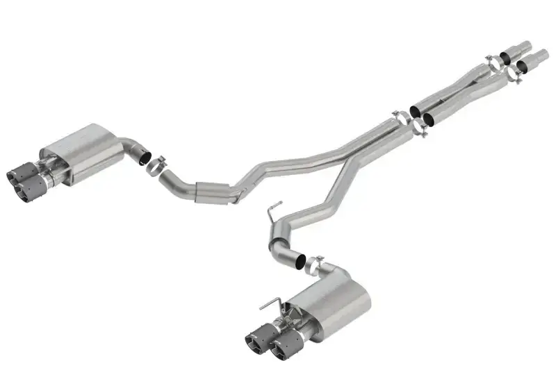 System will fit Bullitt models. NOT recommended for use on convertibles. 3″ diameter system. System contains a merge X-Pipe for increased performance and improved sound. System has Active Valve Exhaust valves. Equipped with 4″ carbon fiber tips with bright centers. BORLA Cat-Back and Axle-Back exhaust systems feature patented straight-through and multi-core technology designed to unleash hidden horsepower. Increased exhaust velocity adds power, driving excitement, fuel economy, and the distinctive BORLA Sound of Power respected by motoring enthusiasts everywhere.