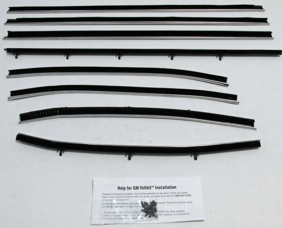 Kits vary by application and may include inner and outer window sweeps, outer sweeps only, or driver- or passenger-side components. Please review the product description carefully to confirm exactly which pieces are included for your specific vehicle.