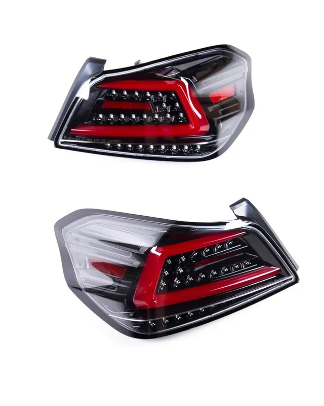 Spec-D Optic Style Sequential LED Tail Lights Gloss Black Housing w/ Clear Lens and Red Bar 2015-2021 WRX / 2015-2021 STI Viral