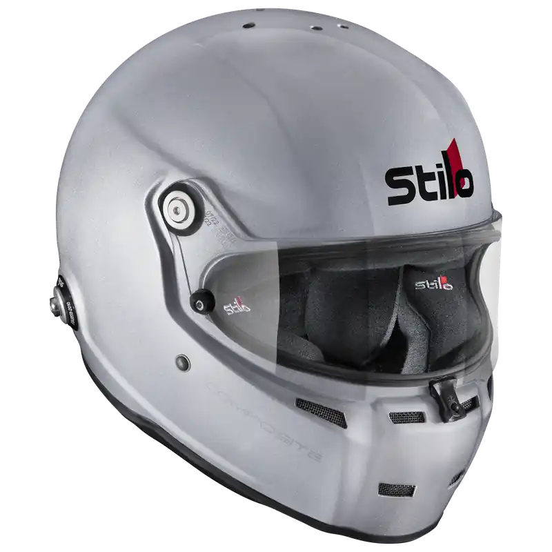 The Stilo ST5 FN Composite helmet is an iconic helmet used in a variety of race types.Crafted from a Multi Sandwich Fiberglass layup and exceeding the Snell SA2020 and FIA 8859 rating, this helmet is predominantly used in open cockpit environments and features an array of improvements from the ST4 Helmet. Weighing in at 3.39lbs in the small shell size and 3.63lbs in the large shell size this helmet comes standard with a sleek silver color.