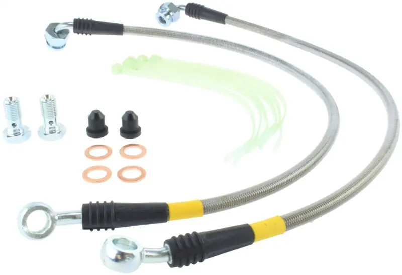 StopTech Stainless Steel Braided Brake Lines provide a quicker; firmer; more consistent pedal response by maintaining consistent brake pressure. Additionally; stainless steel lines provide precision brake modulation; especially during threshold braking. The improvement in pedal feel is more dramatic on older vehicles where the factory rubber line may have softened and swelled due to age. A variety of end fittings are available to meet application needs. All fittings are engineered for proper fit and durability. All necessary brackets and fasteners are included with each line kit.