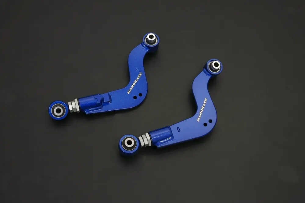 Hardrace camber kits reduce tire wear and Increase handling performance. Our camber kits are made with high quality carbon steel and are acompained with our long life, high performance hardened rubber Bushing which provide advanced stability and accurate steering response, especially during high speed driving and cornering.