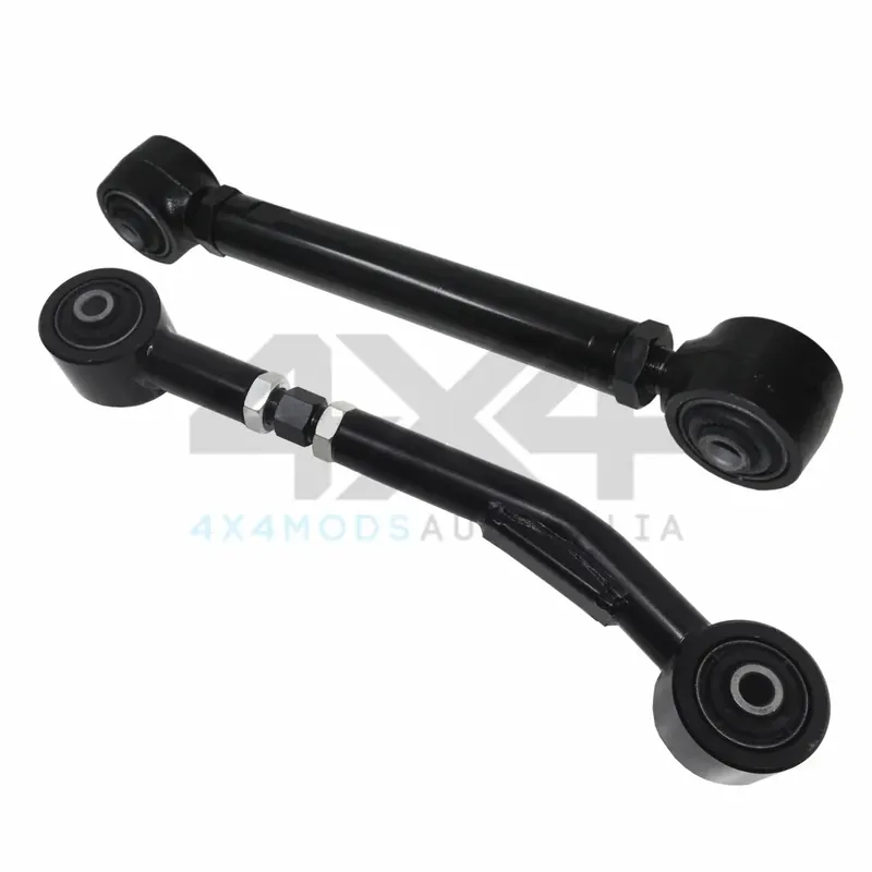 PSR’s Nissan Patrol GQ-GU rear upper arm Kit comes with a straight and a bent arm to suit on range fuel tanks now comes on car adjustable. When fitting a long range fuel tank under suspension travel the arm can come into contact with the tank. Due to space restrictions the tank must be placed in this position. This arm overcomes this issue while allowing adjustment to suit opposing arm. Supplied with new rubber bushes and coated Black to blend with the chassis.