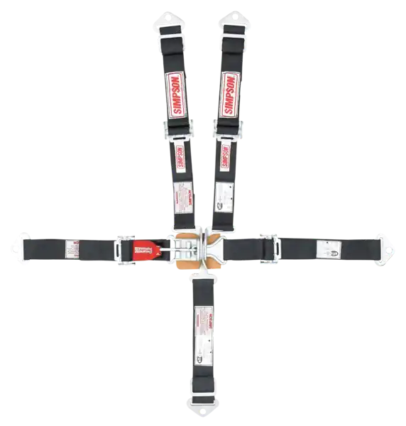SFI 16.1 certified 5 point, latch and lock, pull down belt, individual shoulder harness.